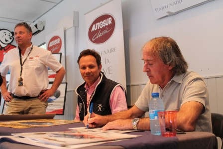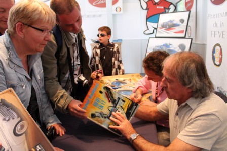 Nos chers têtes blondes ne sont pas en reste, des minis-bolides rouges étant mis à leur disposition par l'Automobile Club de l'Ouest … Et , tandis que certain(e)s s'adonnent à l'art pictural sur un Citroën tube H tel Andy Warold , Roy Linchtenstein ou Calder, d'autres exercent leur habileté avec des billards japonais en bois. Le trop plein d'energie restant est évacué dans les structures gonflables . C'est à qui mieux-mieux que les rires s'élèvent de ces chateaux aussi colorés qu'ephémère !!! Et enfin , d'autres arbordent fièrement leur appartenance à l'enfance avec des maquillages divers et variés . Cette année, la grande parade ne se déroule pas comme traditionnellement samedi mais dimanche... Et ce n'est pas le seul changement puisque maintenant chaque voiture en piste rapporte 10 Euros à une association. 577 autos étaient sur la piste F1 pour cette parade Autosur Classic qui rapporte 5770 € à l'institut du cerveau et de la moëlle épinière. Et 577 autos, c'est vraiment féérique. La surprise qu'avait annoncée l'organisation est arrivée par les airs avec une sublime démonstration de voltige. MAGIQUE... Jacques LAFFITE était mis à l'honneur cette année. Le pilote emblématique de LIGIER Formule1 s'est prêté avec sourire et bonne humeur à de multiples cessions de dédicasse. Et il furent nombreux , pour la plupart amateurs éclairés , à repartir avec un poster de Guillaume LOPEZ signé par l'artiste et le grand Jacques. Personnes n'a oublié que Jacques nous faisait vibrer derrière nos postes de télévisions... Jacques reprendra également le volant de « sa » Porsche 911 dans laquelle il courrait la « Carrera Cup ». C'est à Pau en 1993 que j'ai vu Jacques pour la première fois et au volant de cette auto !!! Séquence émotion. Le débat est très rapidement lancé et les questions posées tournent autour de la Formule 1 moderne : la pression des pilotes actuels , la démission de « Bernie » , l'argent... A la fin d'un échange , Jacques salue d'une manière très appuyée Jean-Pierre PAOLI qui écoute en compagnie de sa femme , debout dans le fond de la salle. Une question tombe à ce moment là sur qui , aux yeux de Jacques , est le meilleur pilote . « Chaque époque a eu son grand pilote . Mais , celui qui m'a donné le plus de fil à retordre , c'est mon coéquipier Didier PIRONI . » Des phrases chargés d'émotion qui donne à ces mots une résonance empreinte d'amitié et de respect... A l'issue de ce week -end , Jacques déclare qu'il a rajeunit de 30 ans !!! Nous aussi jacques … Copyright - Emmanuel Leroux - 44140 Geneston |